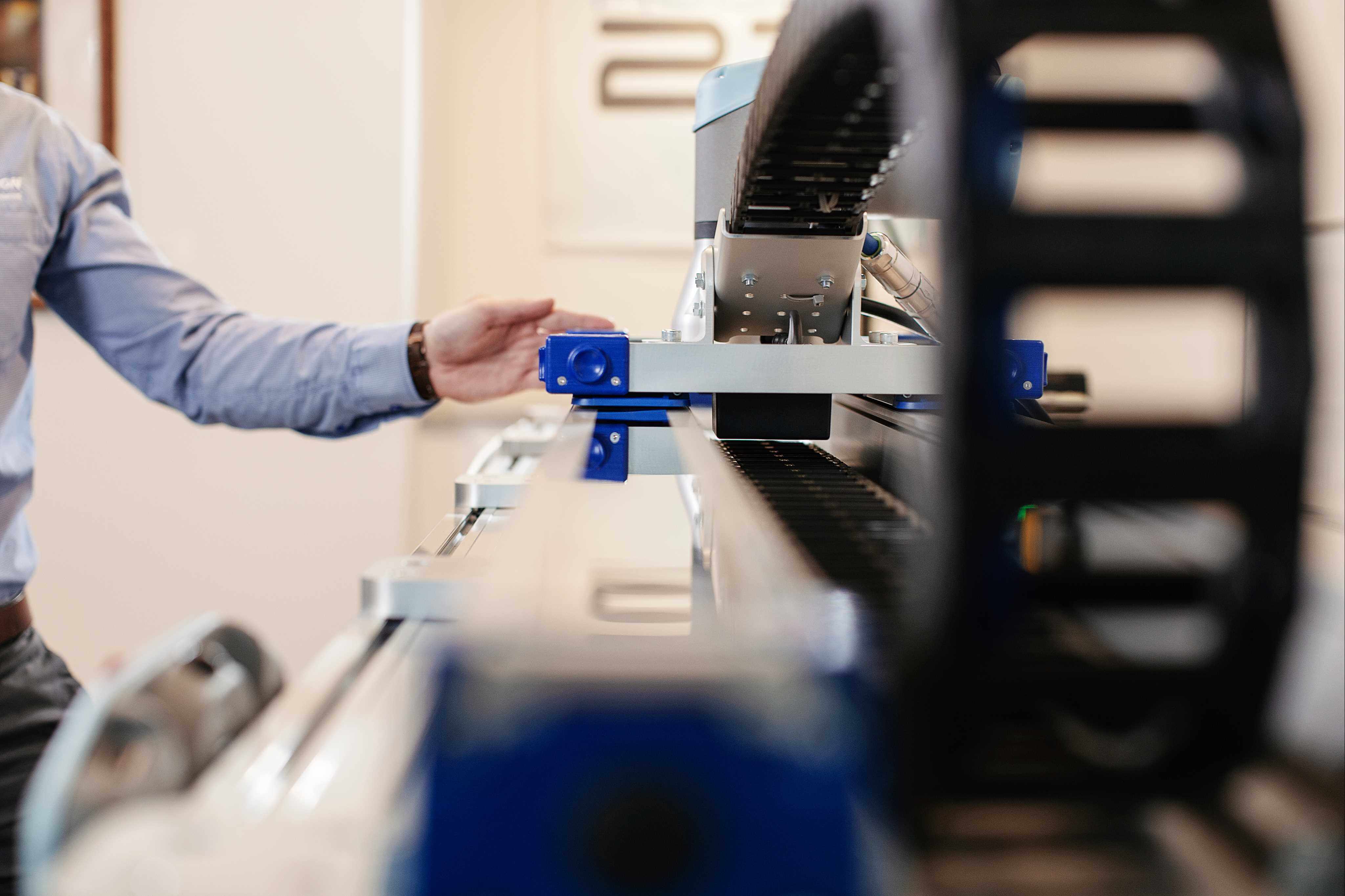 • Large surface areas on the MovoTrak linear carriage act as paddles, allowing for a safeguard stop when contacted.