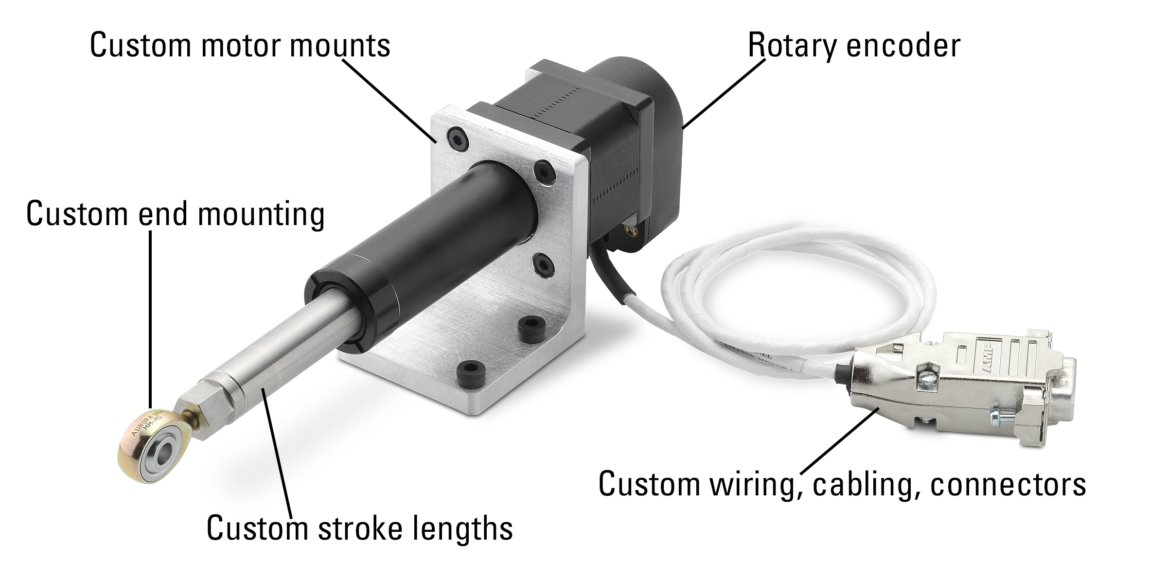 Collaborating with a manufacturer that has vast experience in customizing linear motion components produces both immediate benefits for the design project as well as long-term benefits for the application. The several modifications called out for this Thomson motorized lead screw actuator illustrate potential examples of how the overall design process can be simplified, and designers can save time and costs in specifying additional parts.